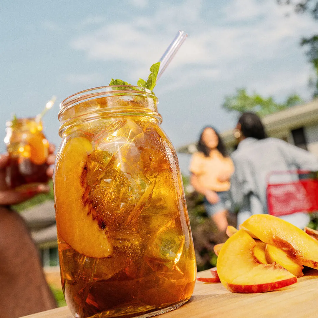 Pfirsich & Eistee: Dieser Cocktail ist ein klassischer Südstaaten-Cocktail, neu interpretiert mit einem Jim Beam-Twist. Es wird unser Jim Beam Peach mit erfrischendem Eistee gemischt, auf Eis serviert und mit saftigen Pfirsichen und frischer Minze garniert. Dieser Pfirsich- und Eistee ist eine köstliche und dennoch erfrischende Wahl.