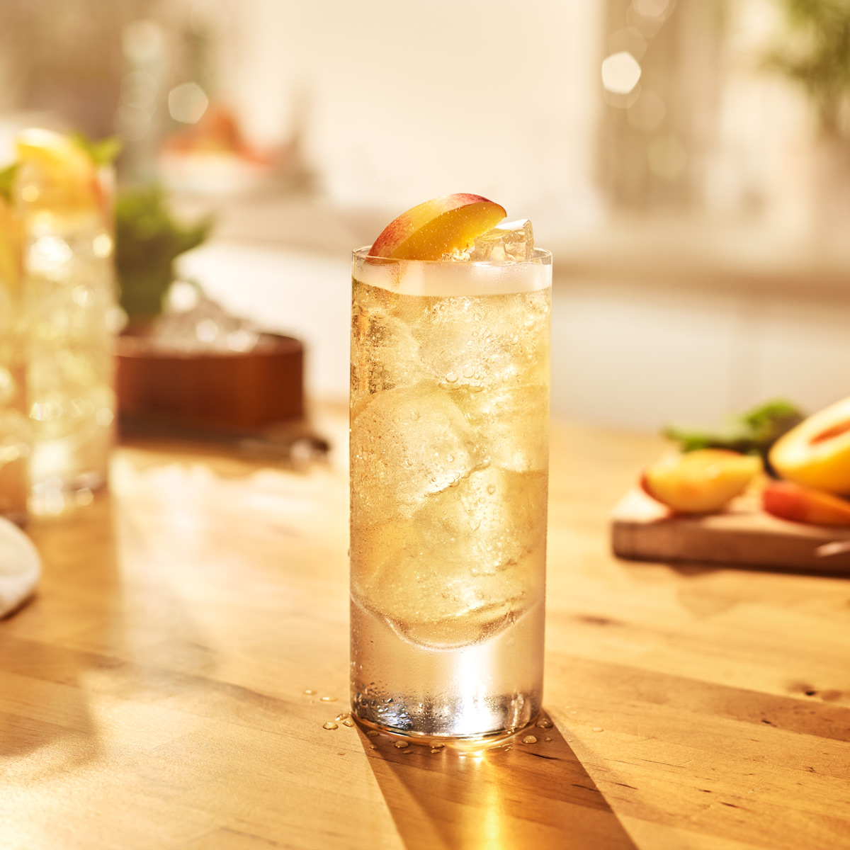 We present Jim Beam Peach & Soda Highball, marrying smooth Jim Beam Peach with crisp soda, creating a delightful blend of fruity sweetness and effervescent tang.