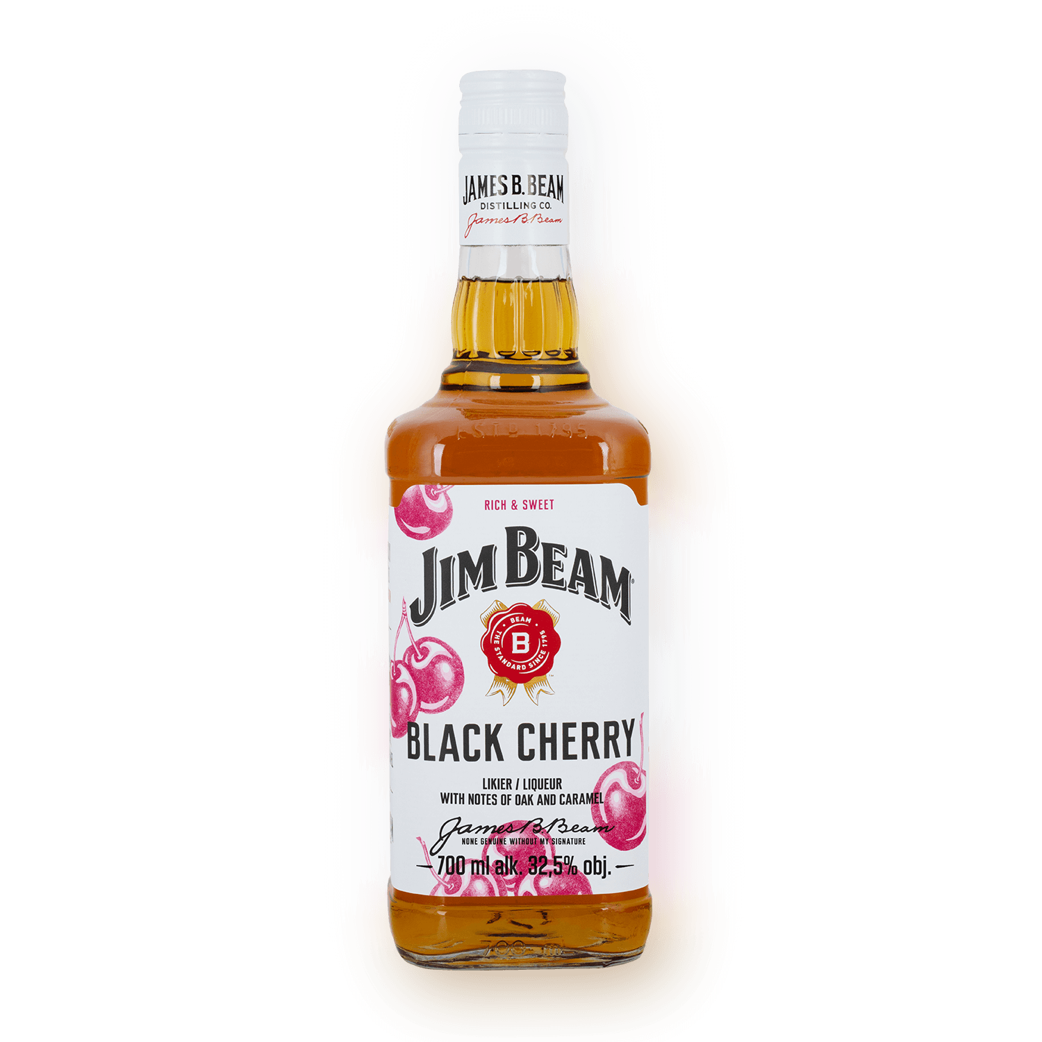 Jim Beam Black Cherry to wyjątkowa kombinacja likieru wiśniowego z dodatkiem legendarnej Kentucky Straight Bourbon Whiskey. To również jeden z pierwszych smakowych bourbonów, który stał się popularny dzięki idealnej równowadze delikatnych wiśniowych aromatów, oraz tradycyjnych dębowych nut bourbona.
