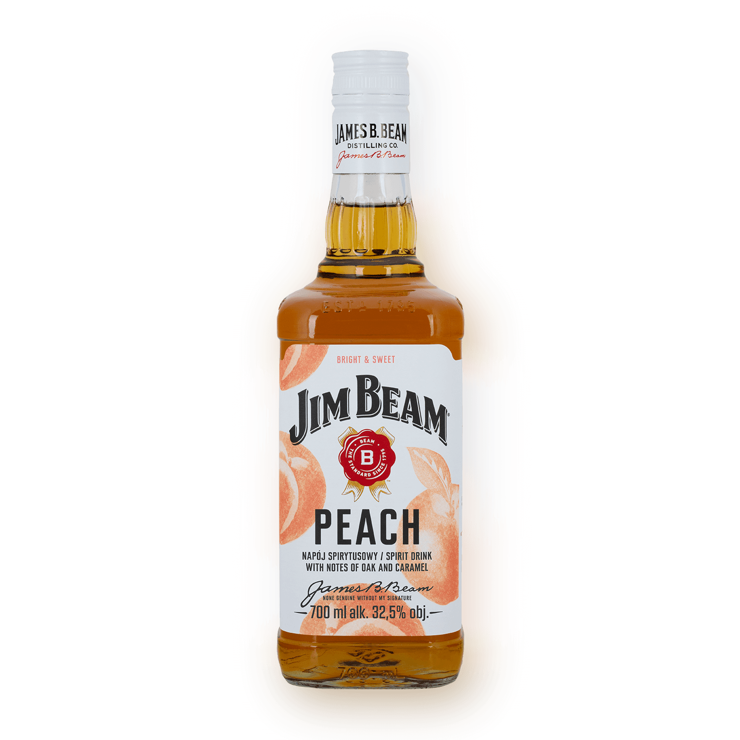 Nasz Jim Beam Peach jest niczym ciasto z brzoskwiniami. Idealne połączenie naszego kultowego Kentucky Straight Bourbon Whiskey oraz smaku świeżych brzoskwiń. Doskonały zarówno do letnich drinków, jak i wyrazistych zimowych koktajli.